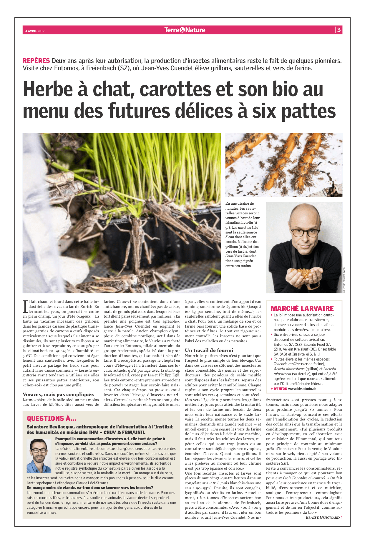 Lire l'article de "Terre et Nature" sur la ferme Entomos, située à Freienbach, en Suisse